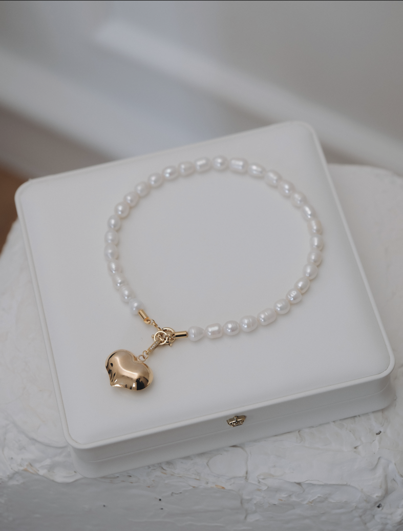 Колие от перли с висулка сърце