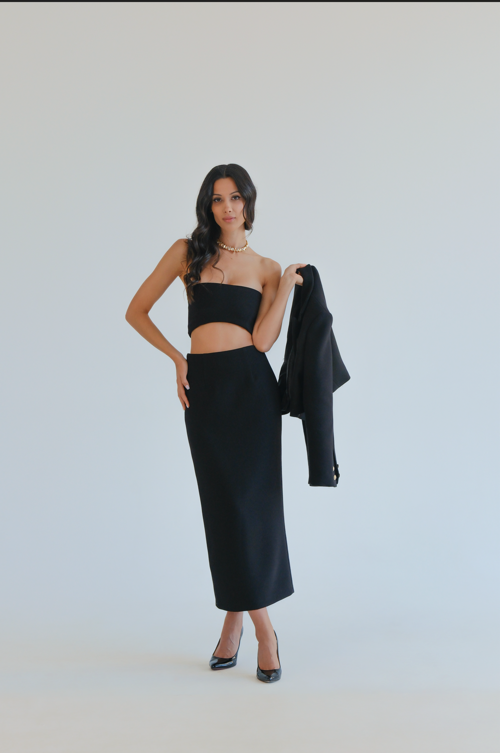 Топ за модерна, женствена версия. Топът стои минималистично под сако, може лесно да се комбинира с пола или панталон. Материята е с плътност и еластичност за гладко прилягане без ограничение в движенията. Не прозира.