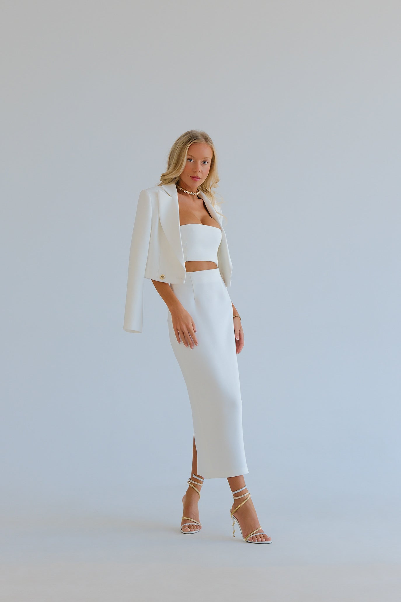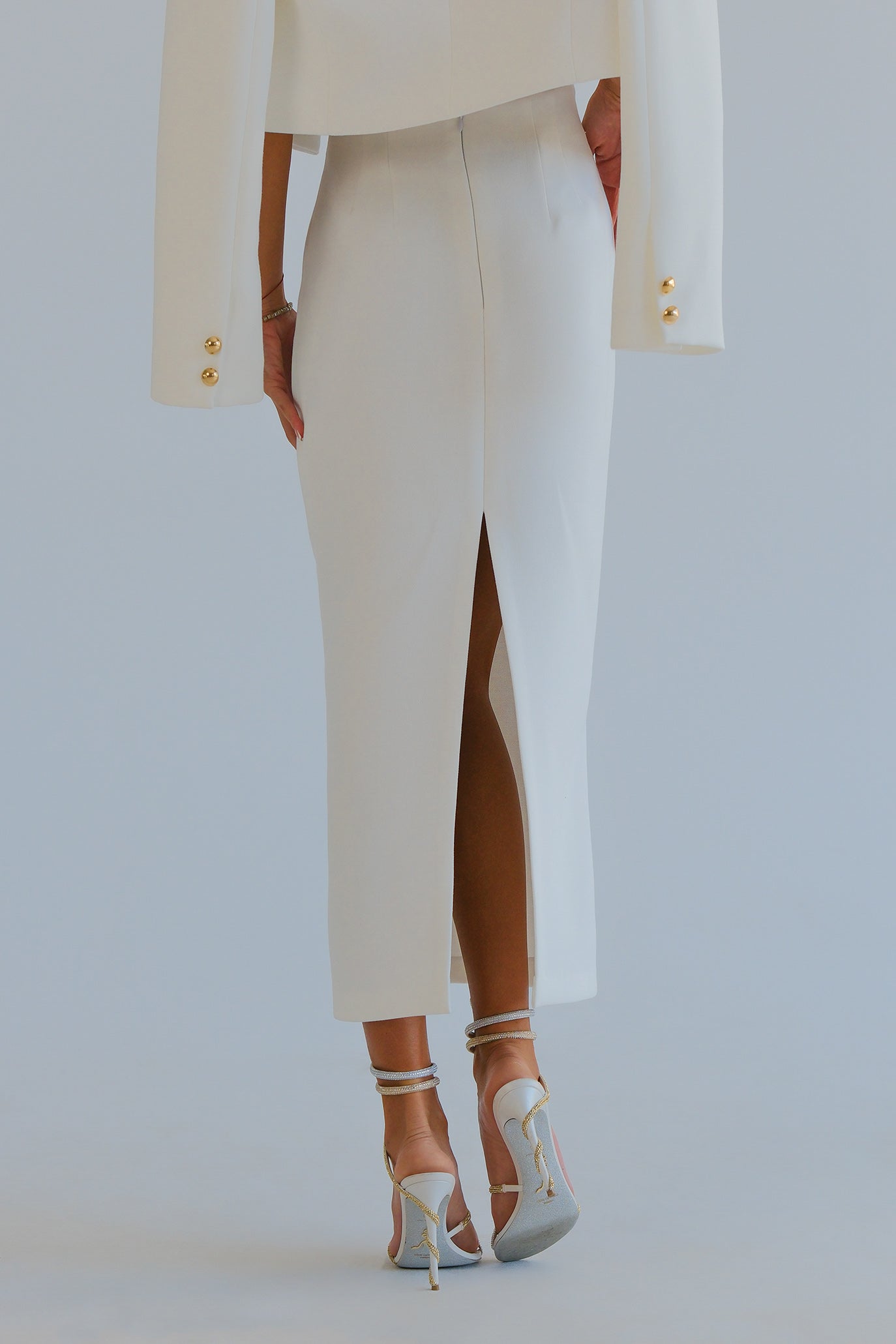 Пола за модерна, женствена версия. Полата молив е от специална плътна непрозираща материя, която оформя и подчертава талията и извивките на тялото. Визуално издължава издължава силуета, благодарение на кройката с висока талия.