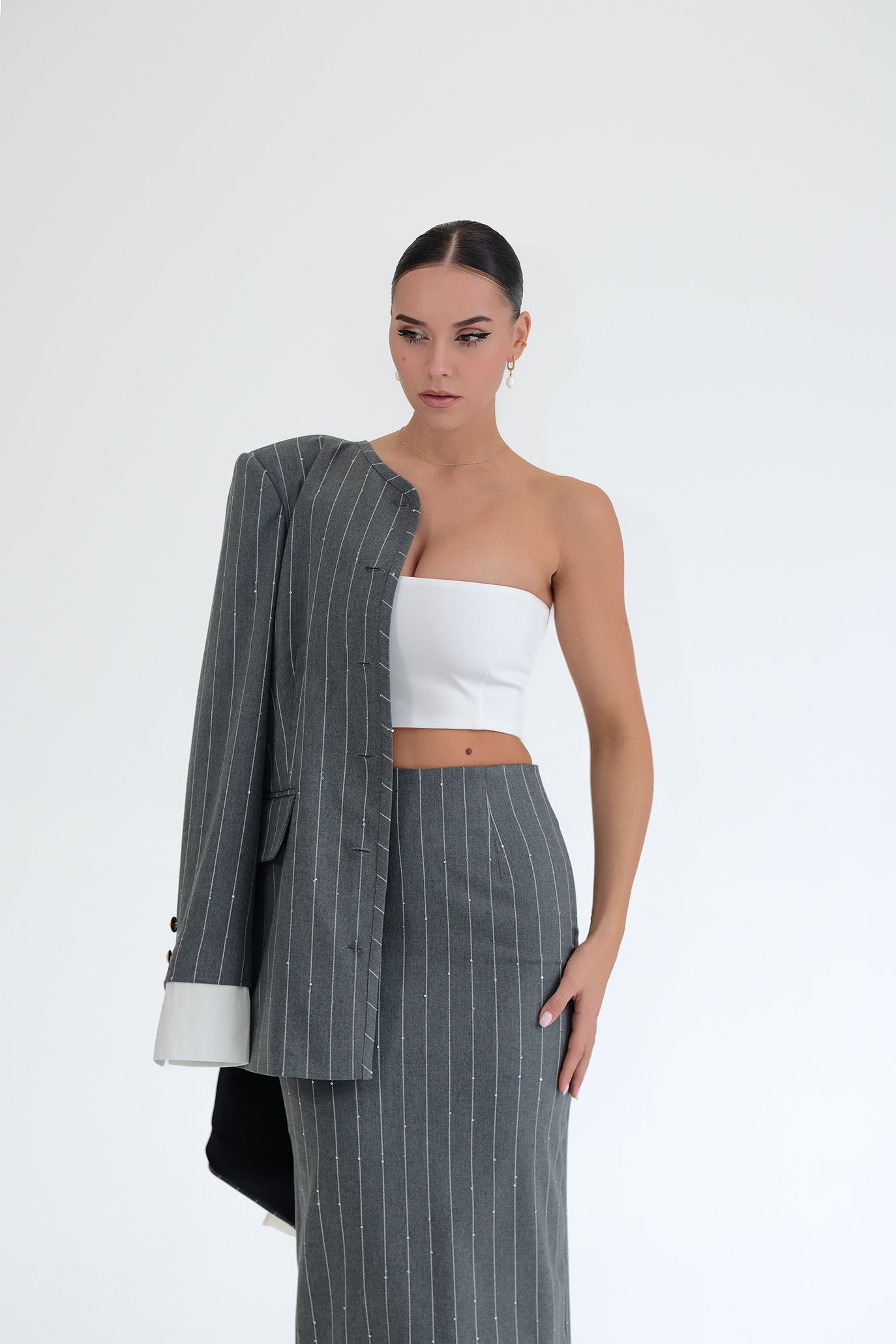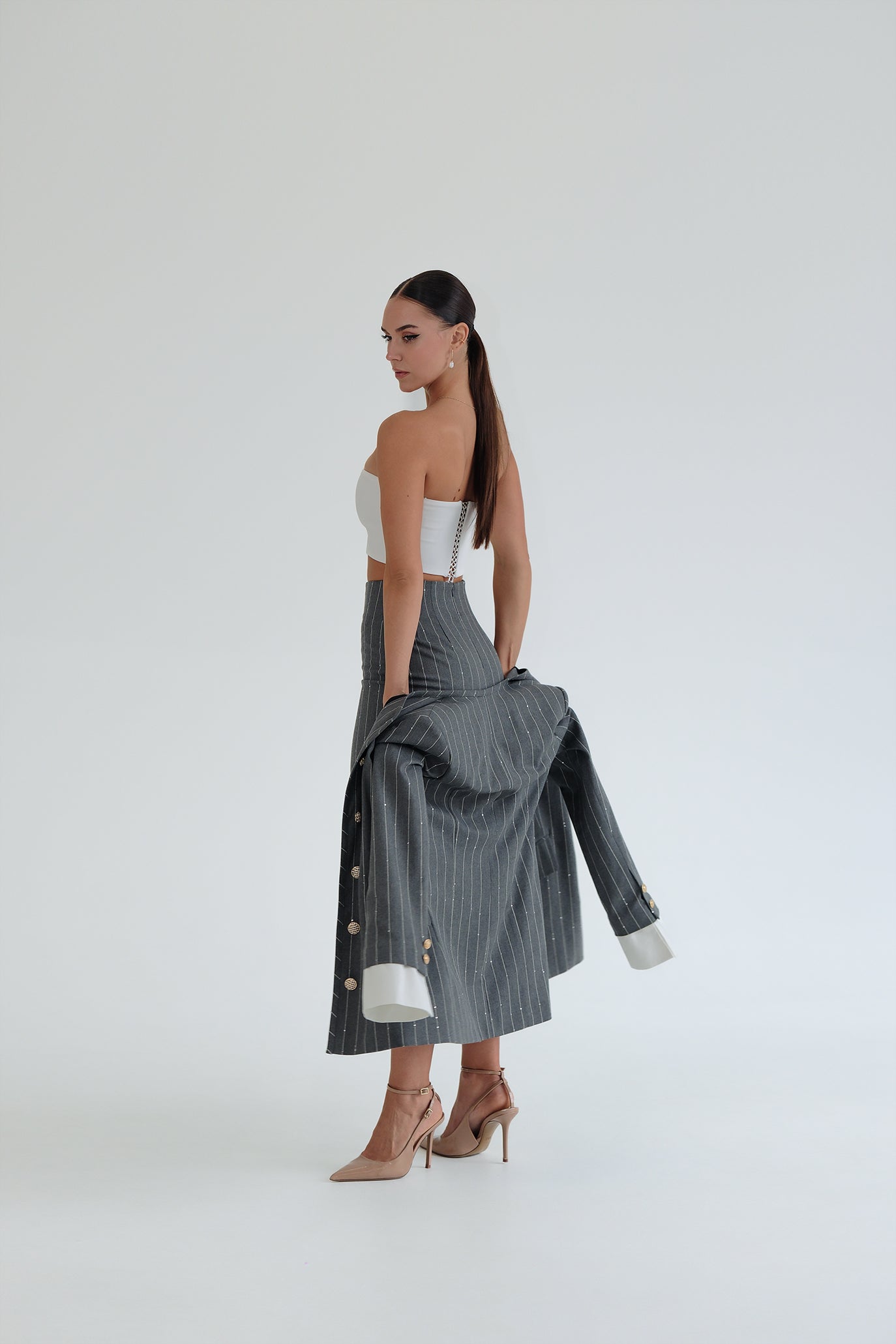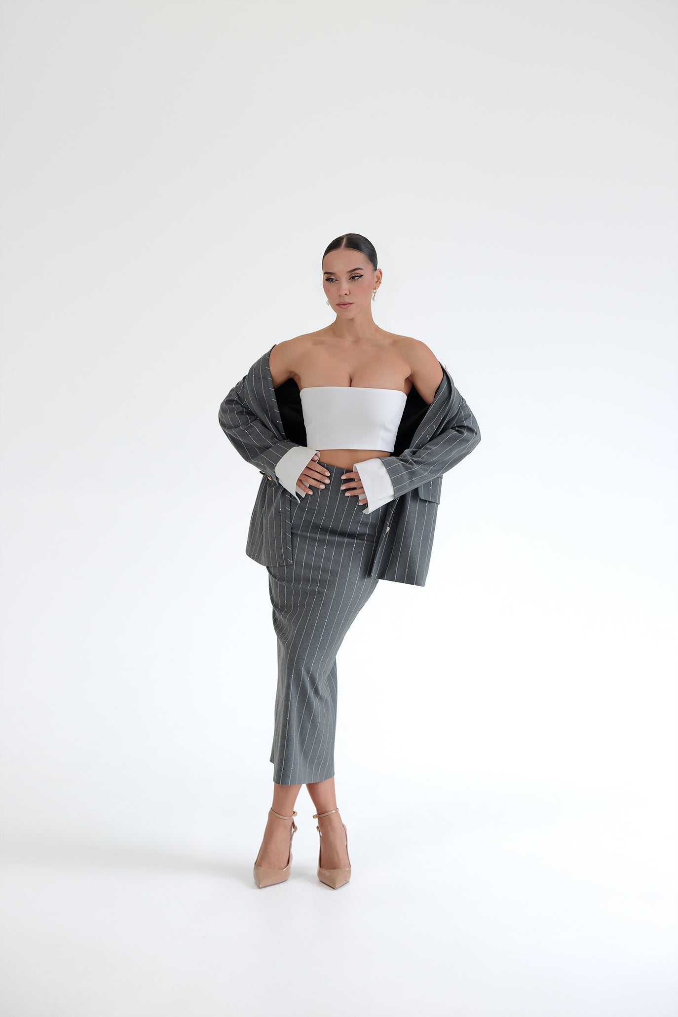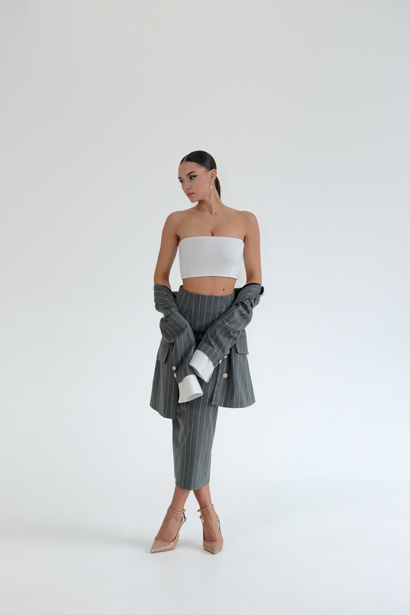 Пола за модерна, женствена версия. Полата молив визуално издължава издължава силуета, благодарение на кройката с висока талия. Кройката е с права линия и удобна дължина „миди“ – идеална както за официални поводи, така и за стилни дневни визии.