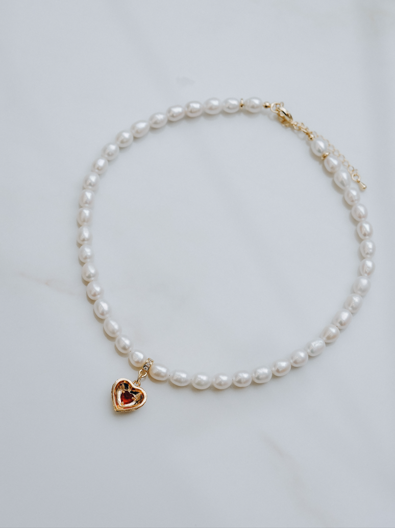 Колие с естествевни перли и висулка сърце