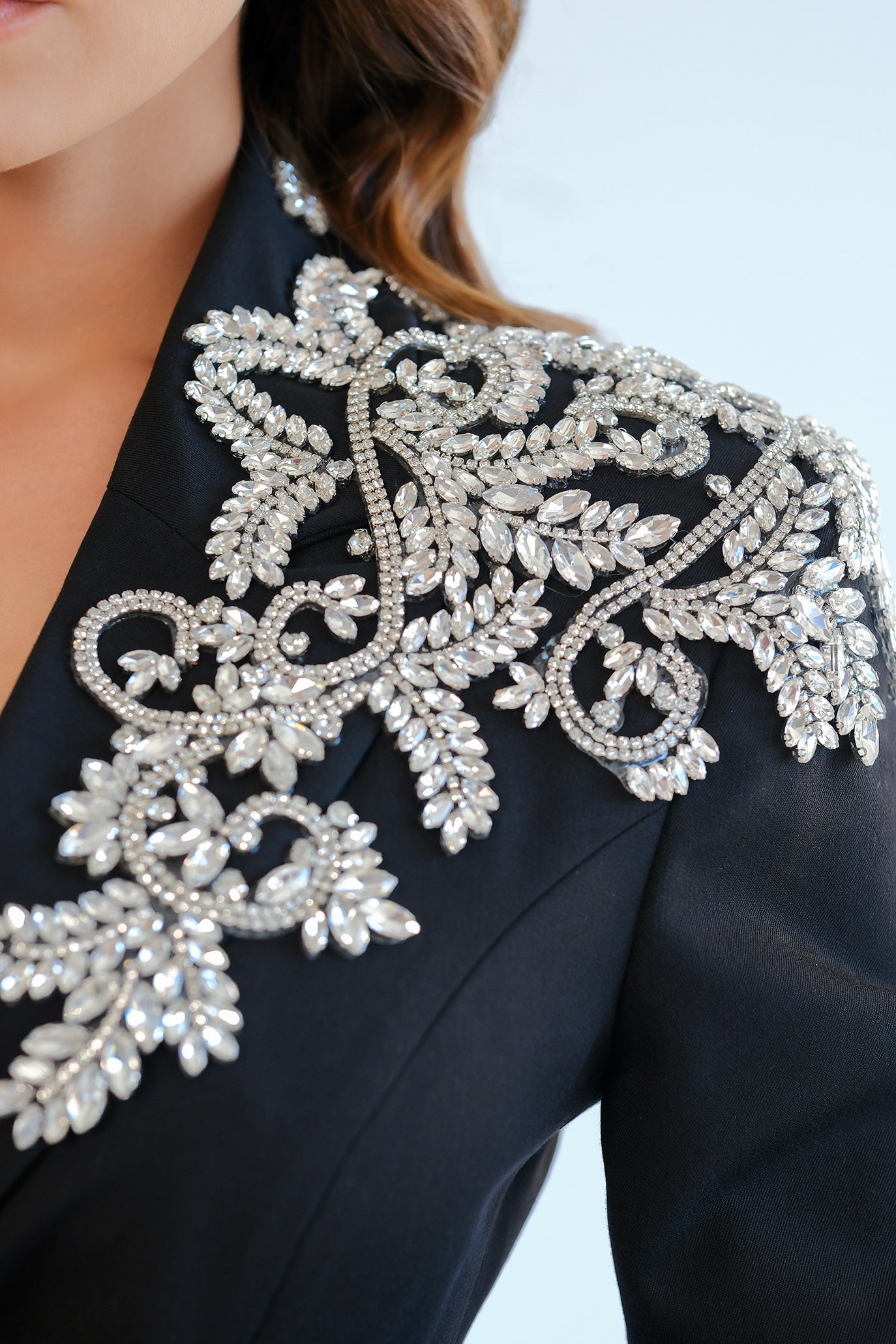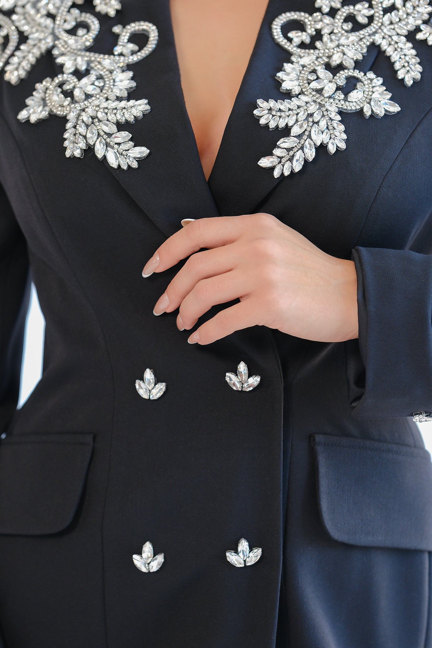 Ръчно изработена рокля-сако с камъни и кристали тип Swarovski в черно