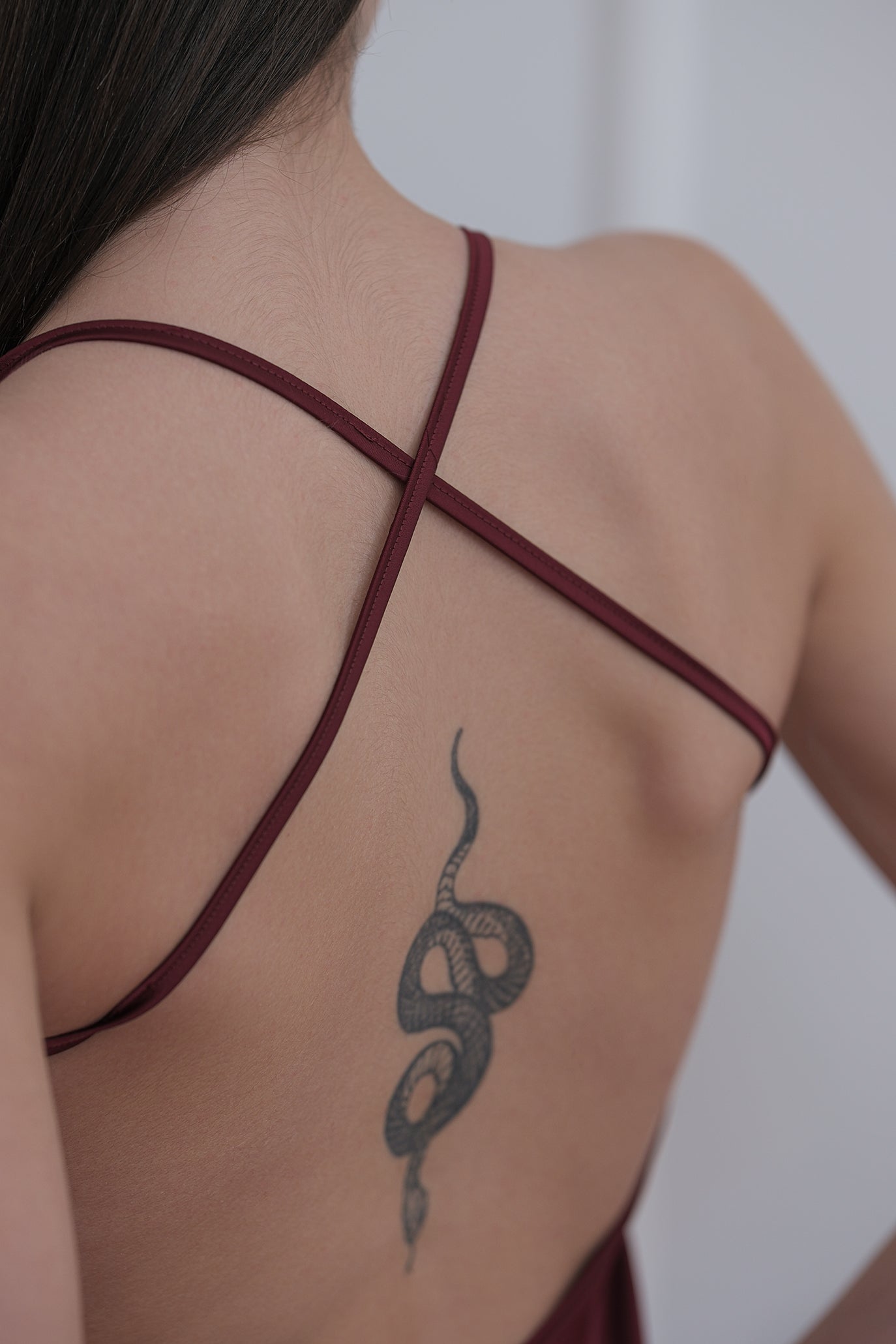 Изискана рокля, особено подходяща за луксозни вечерни събития. Изцяло ръчна изработка. Роклята е от висококачествен сатен и с кройка тип нощница - свободна и удобна, падаща по тялото. Отзад е с кръстосани презрамки, които елегантно подчертават гърба.