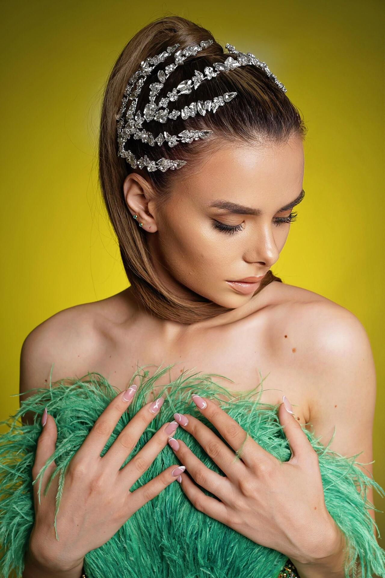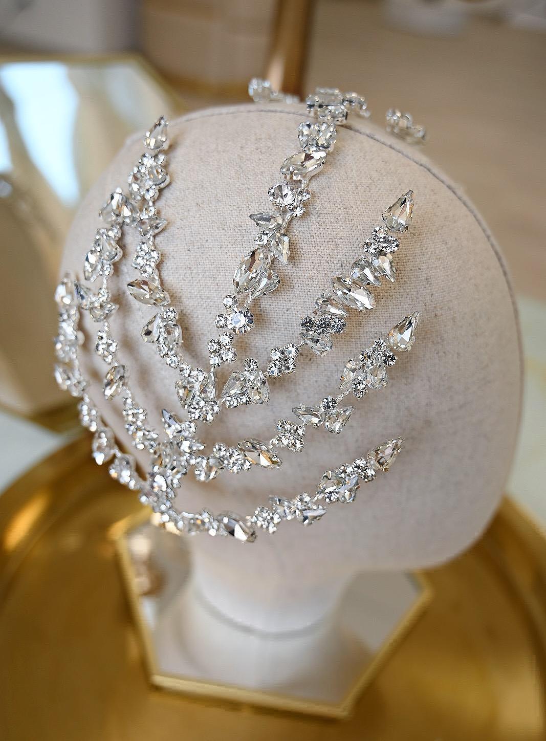 Silver tiara with crystals, the widest part is about 11 centimeters. It is suitable for your special occasion. It is made of high quality materials. The size is adjustable to your head to be comfortable for everyone.