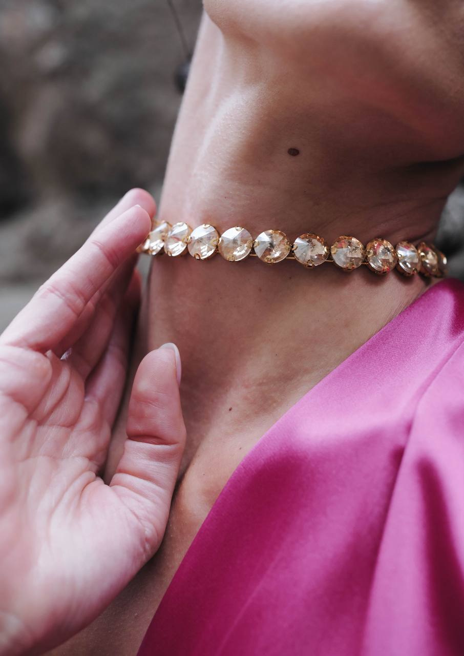 An incredibly delicate choker, with hand-arranged crystals. High-quality materials were used. The crystals, precisely arranged along the entire length of the necklace, reflect the light and give a dazzling shine.