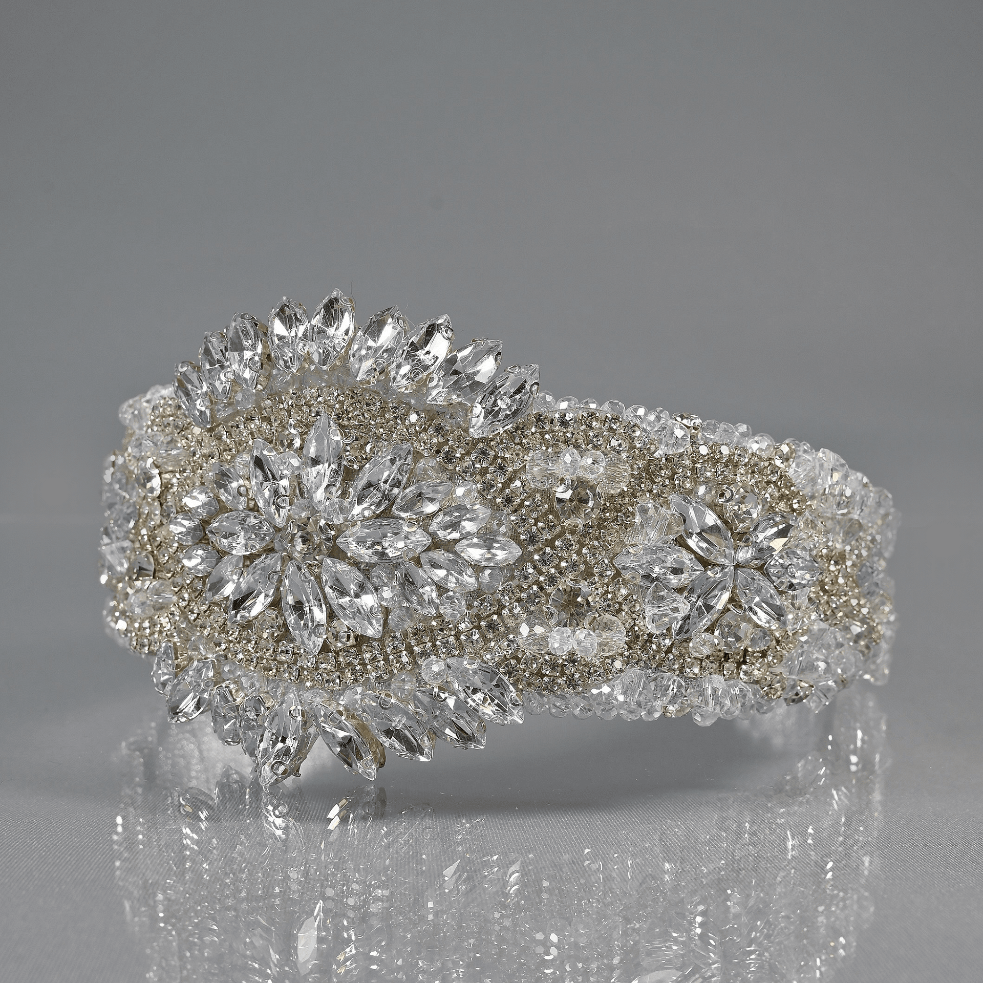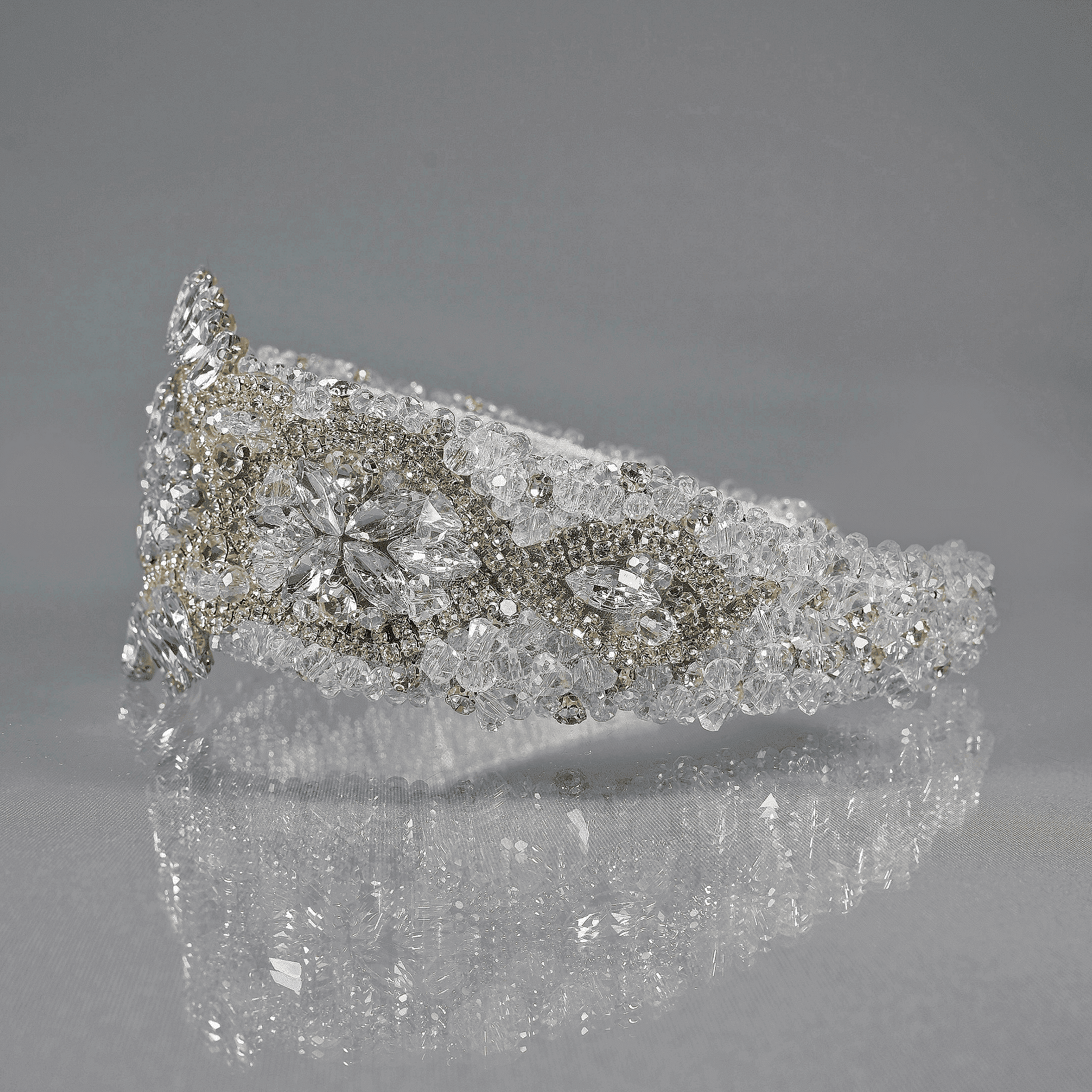 A stiff cord is used to hold the crystals firmly and tightly at the base of the tiara. A suitable finish to stage, formal and extravagant looks. It can also be used as a wedding accessory.