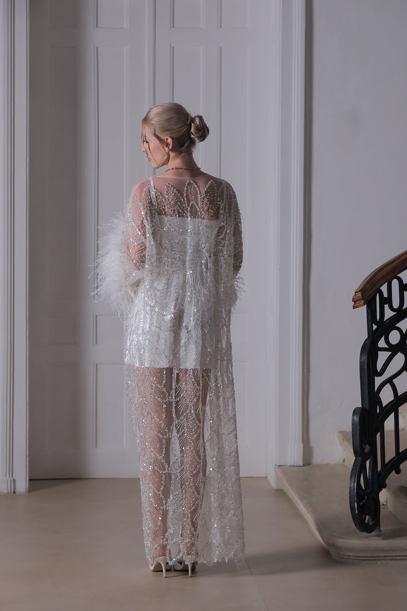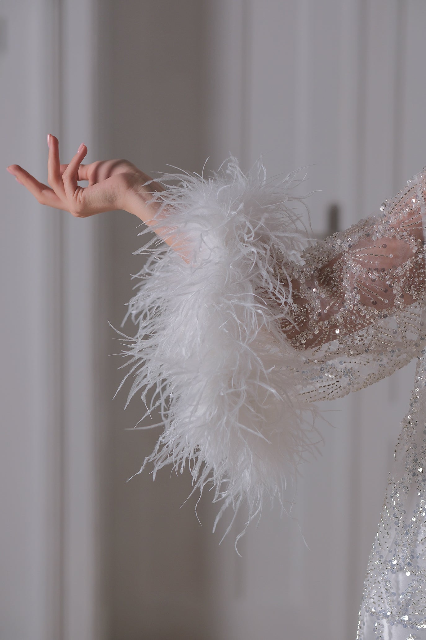 Ръчно изработена жилетка в бяло с пера: Luxury Eve