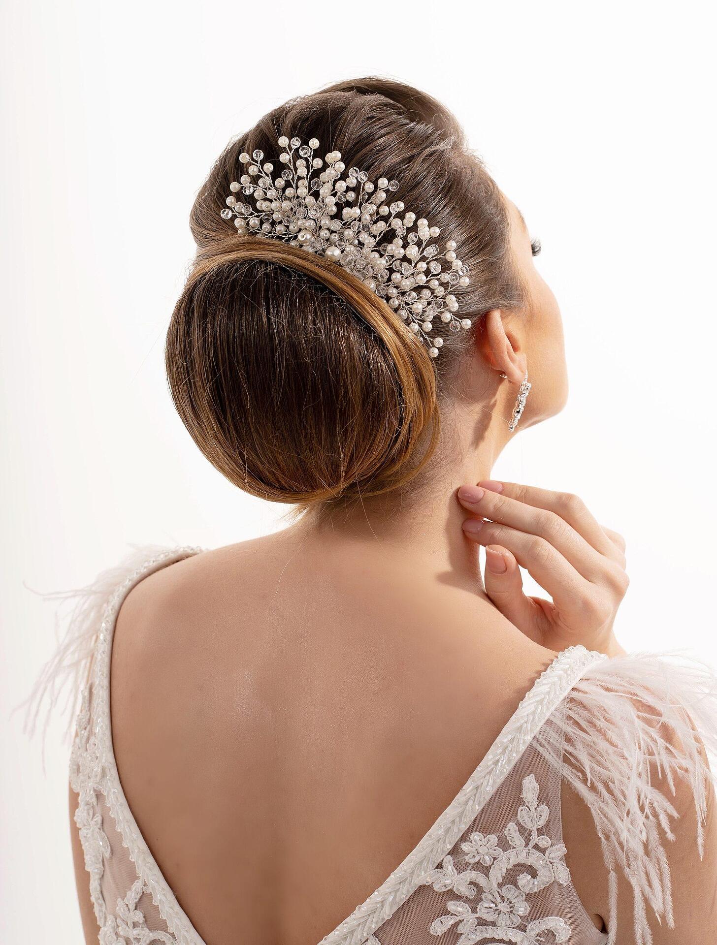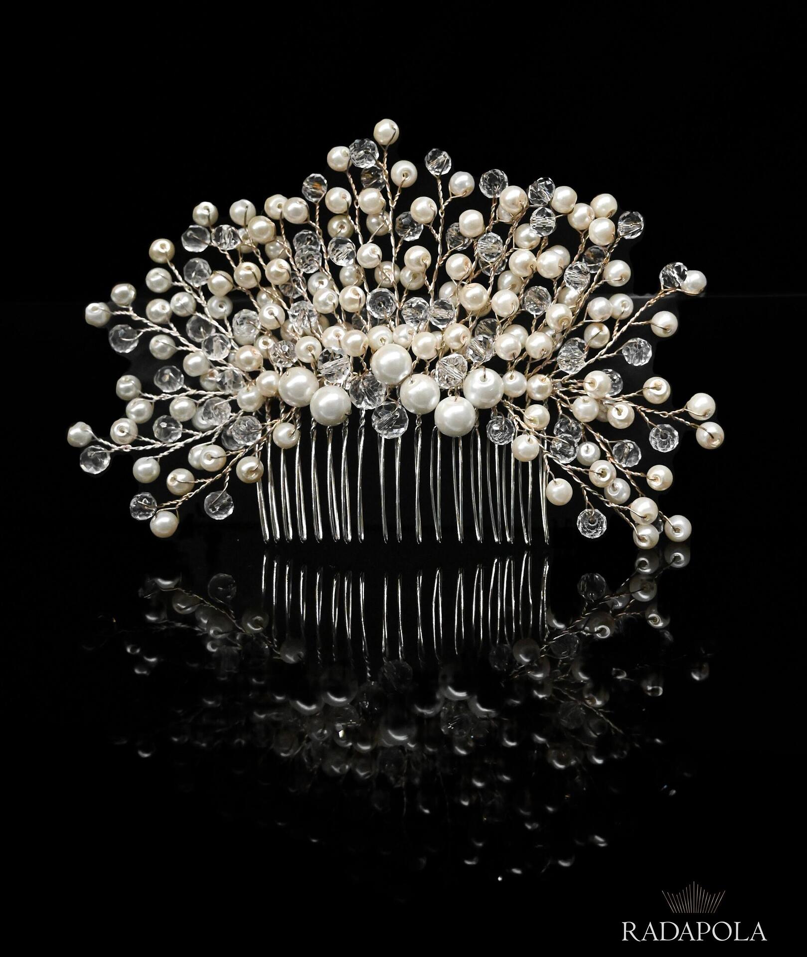 Accessory with faceted crystal beads and pearls. You can perfectly combine it with both loose and tied hair. A beautiful finish to your hairstyle. You can use this accessory for many occasions. It is handmade from high-quality materials.