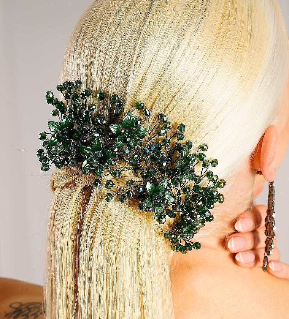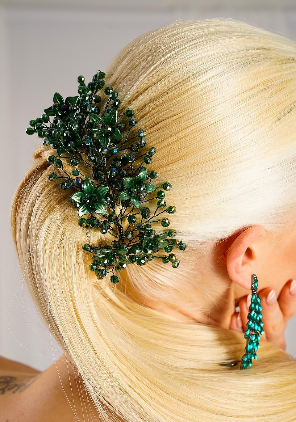Accessory with faceted crystal beads and decorative flowers. You can perfectly combine it with both loose and tied hair. A beautiful finish to your hairstyle. You can use this accessory for many occasions. It is handmade from high-quality materials.